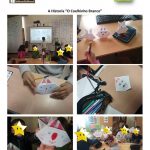 Para além da leitura orientada da obra, os alunos aplicaram a técnica de origami, com o propósito de criarem um coelho branco. A dobragem do papel permitiu que todos, de uma forma lúdica, aprendessem ou recordassem alguns conceitos matemáticos, nomeadamente, as principais formas geométricas.